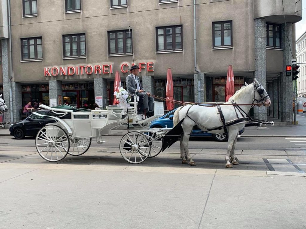 6月の結婚式 ロックダウンの緩和とともに街が賑やかになって喜びと笑顔が戻ってきました。目の前に通り過ぎた馬車はたぶん結婚式の新郎新婦を乗せる馬車でしょうか。 2021年6月1日 manager Categories ウィーンの散歩道